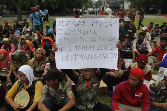 ditemui wartawan di sela aksi, menuntut Pemkot mengembalikan Perda